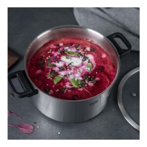 • ویژگی‌ها: کف Superthermic برای توزیع یکنواخت حرارت، لبه خمیده برای ریختن آسان، درجه‌بندی داخلی برای اندازه‌گیری دقیق