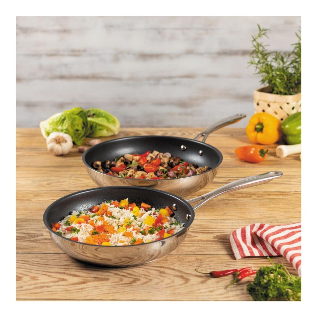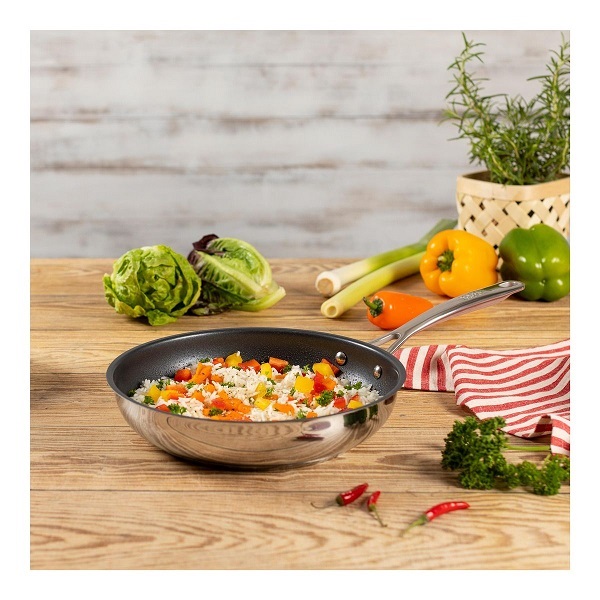 جنس: استیل ضدزنگ ۱۸/۱۰ بدون پوشش (Uncoated INOX)، مقاوم و مناسب سرخکردن با دمای بالا