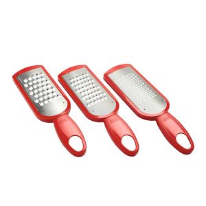 با این ست رنده سوئیسی ریز، متوسط و درشت رنده کنید. تیغه ها برای وضوح بیشتر با لیزر اچ شده اند. جعبه ذخیره سازی با اسلات های تعیین شده ایمنی و سازماندهی را فراهم می کند. تیغه های لیزری اچ شده از فولاد ضد زنگ فوق العاده تیز. تیغه رنده ریز: سیر، زنجبیل و پوست مرکبات را به سرعت رنده می کند. تیغه رنده متوسط: هویج، سیب و پنیر سفت را رنده می کند. تیغه رنده درشت: سیب زمینی، پنیر نرم و کلم را به راحتی رنده می کند. جعبه ذخیره سازی برای ذخیره سازی و سازماندهی آسان. هشدار: برای کودکان نیست، تیغه ها تیز هستند. در کیدی ذخیره کنید. استفاده نادرست ممکن است منجر به آسیب شود.