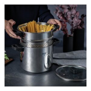 قابلمه پاستا مدل Locarno از برند معتبر Kuhn Rikon، با طراحی مدرن و کیفیت ساخت بالا، انتخابی ایدهآل برای آشپزخانههای شیک و مینیمال است. این قابلمه با ساختار مستحکم و ویژگیهای منحصربهفرد، تجربهای دقیق و راحت از آشپزی فراهم میکند.