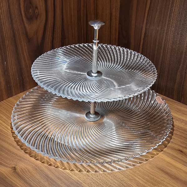 شیرینی خوری 2 طبقه از کریستال مرغوب ساخته شده و 2 بشقاب آن، در وسط توسط یک میله محکم به هم متصل شده اند. کاربردی بودن آن در صرفه جویی در فضای روی میز و سهولت جابجایی نهفته است. به راحتی می توانید انواع خوراکیهای مختلف را در طبقات آن قرار دهید: ساندویچ، میوه، دسر و غیره.