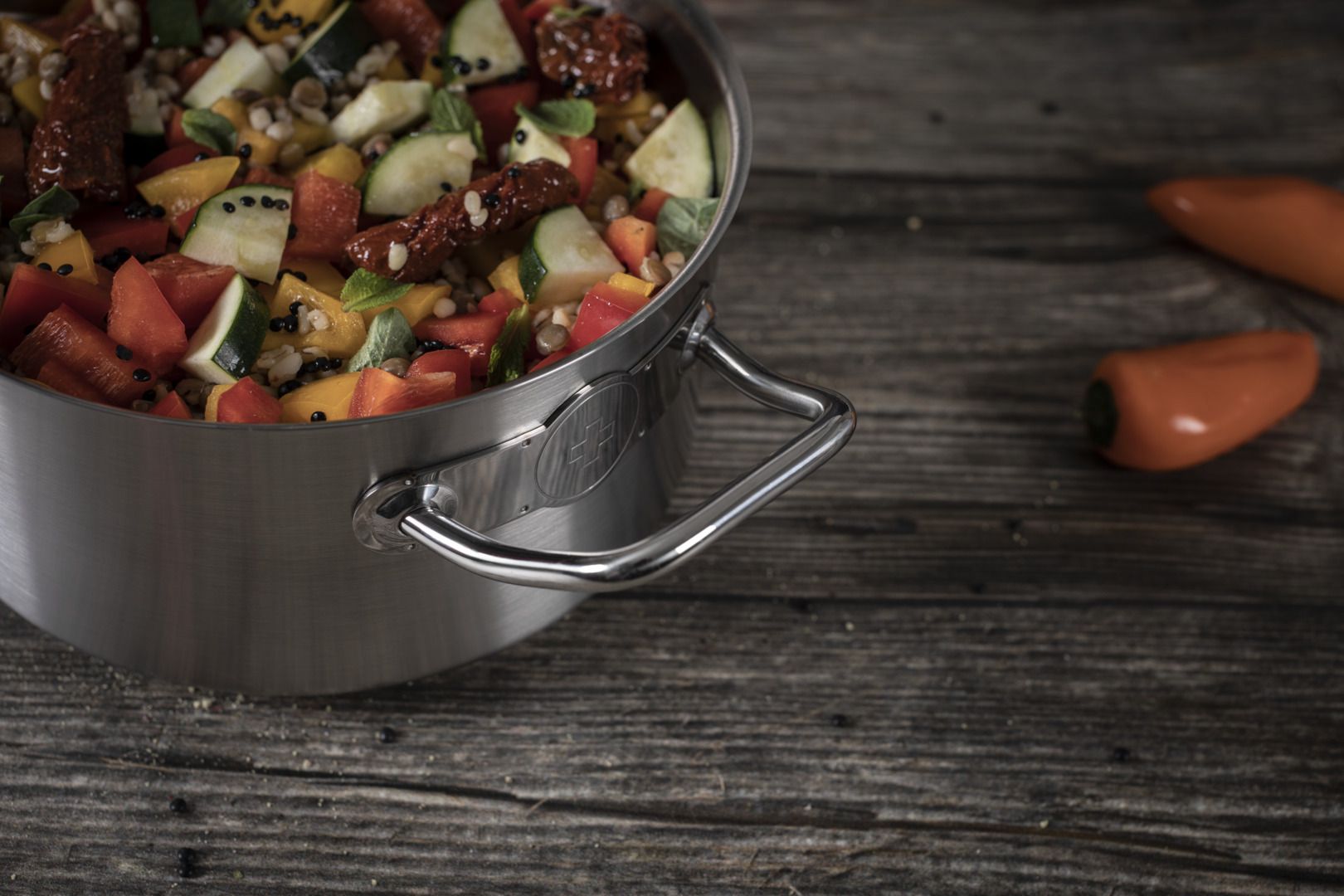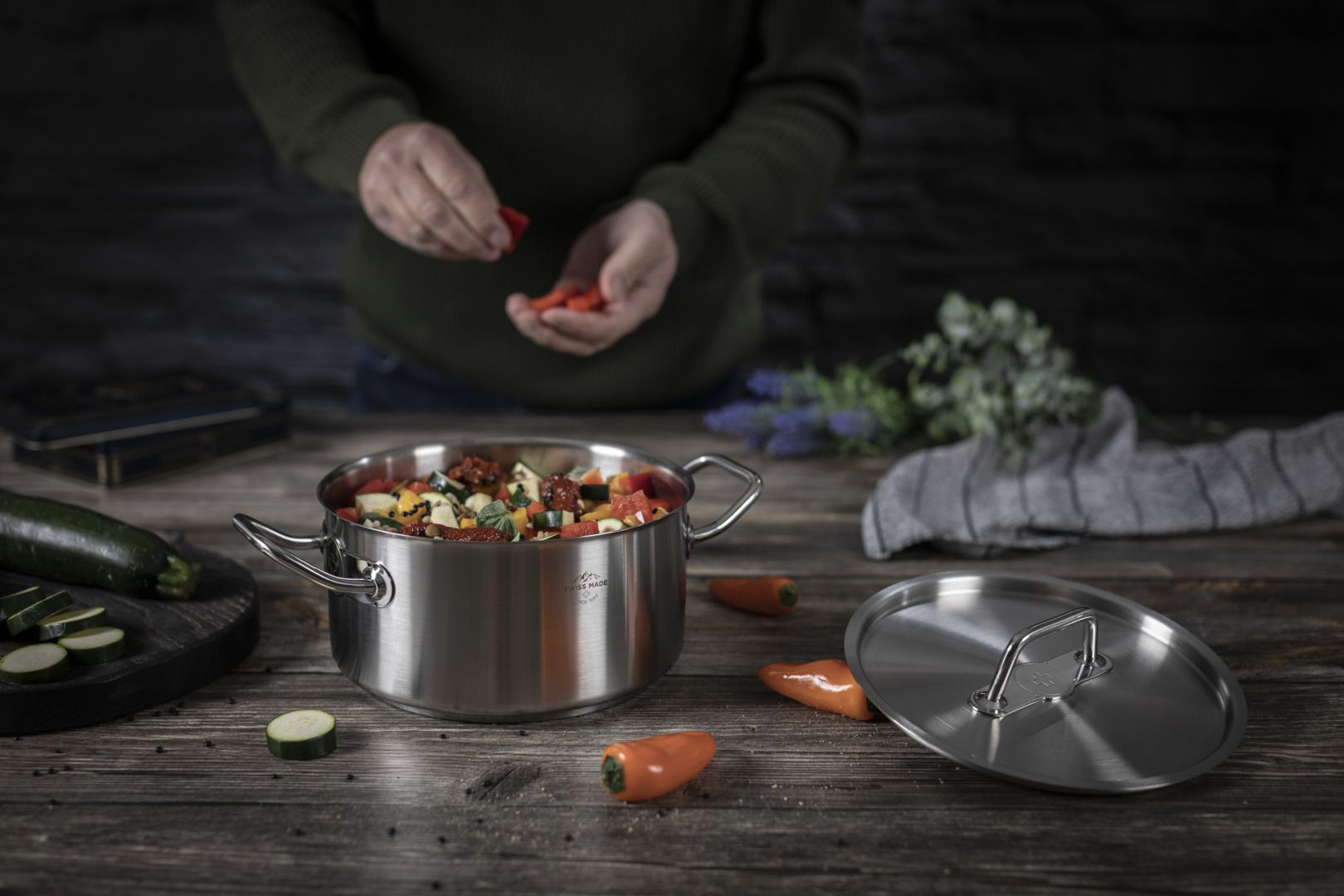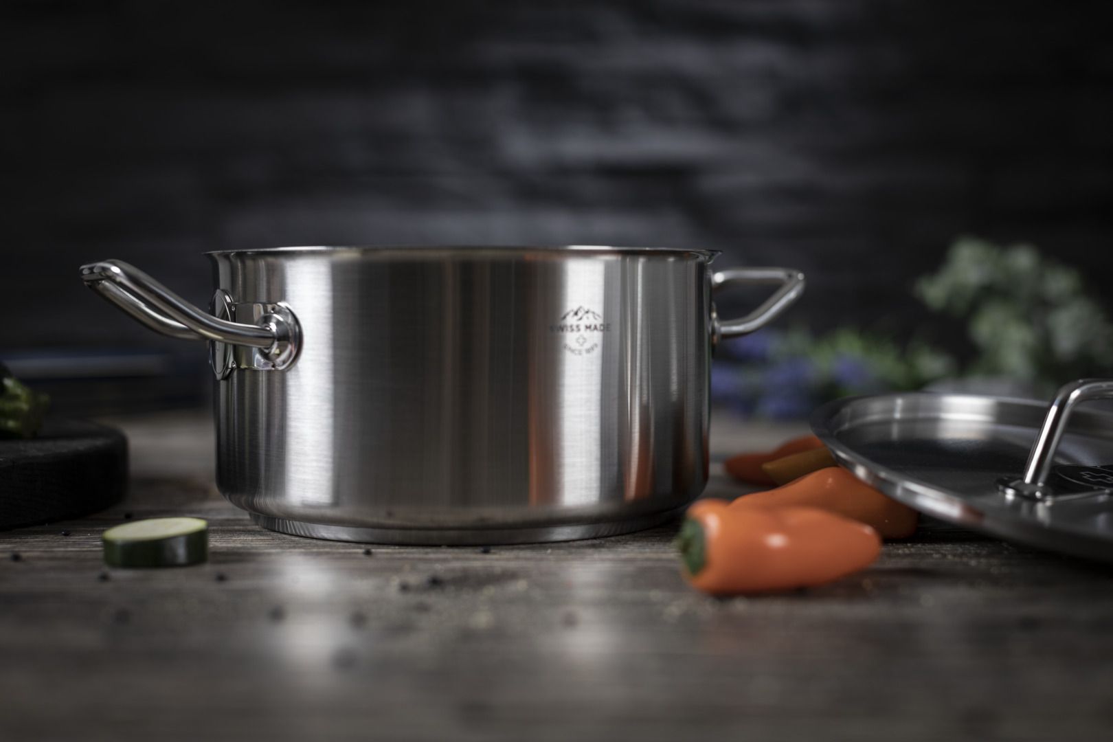قابلمه با کیفیت و حرفه ای ساخت سوئیس برای سرآشپزها و همچنین آشپزهای خانگی، این قابلمه کاربردی و بادوام برای سالیان طولانی دوام می آورد. این قابلمه دارای دو دسته برای بلند کردن آسان از روی اجاق گاز یا در فر می باشد.